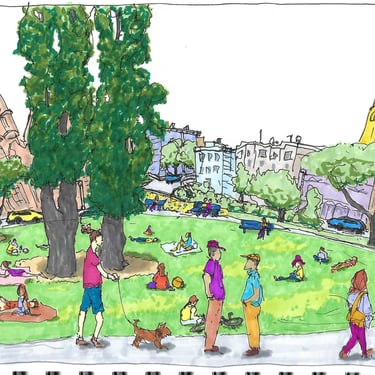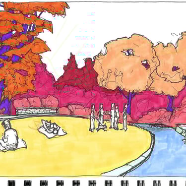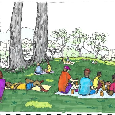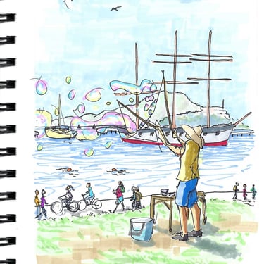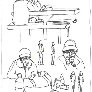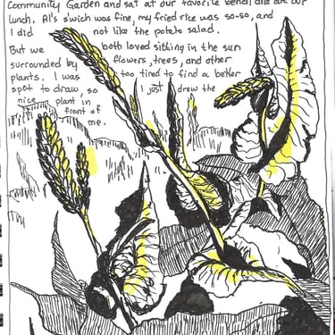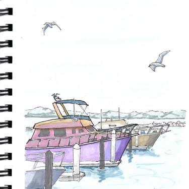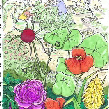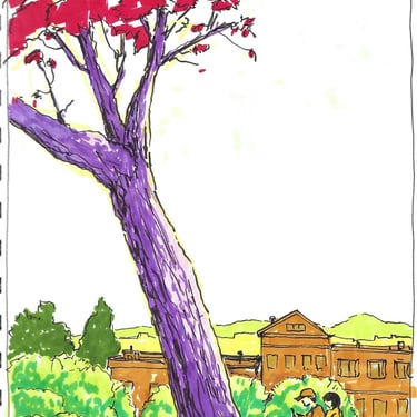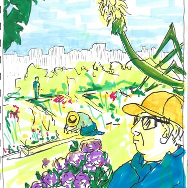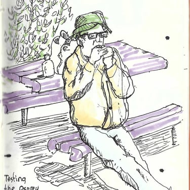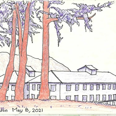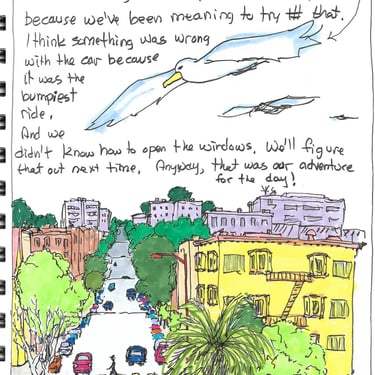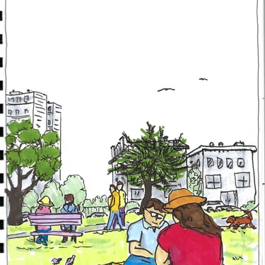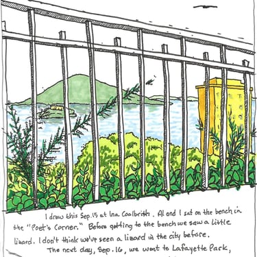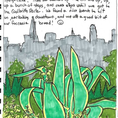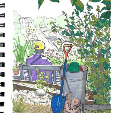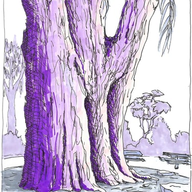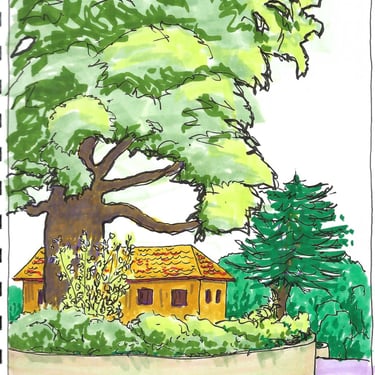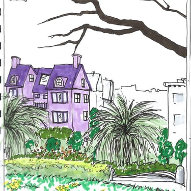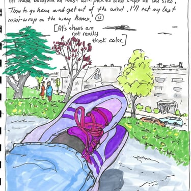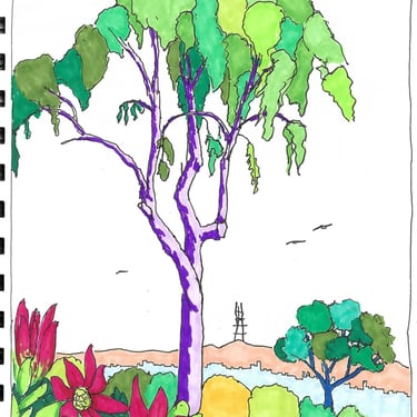 I like to sketch and color on site, but a couple of the sketches I colored at home. There are several parks that we go to frequently, and it's fun to draw the same scene a different way, or to find a new part of the park to draw.
