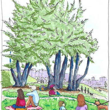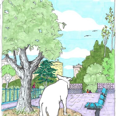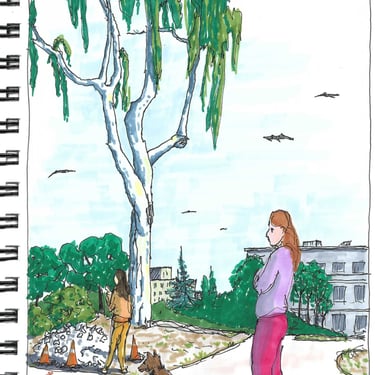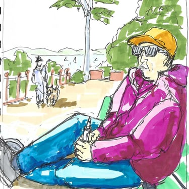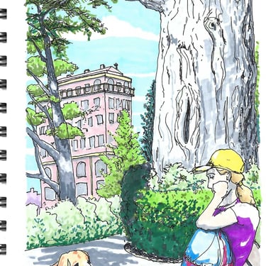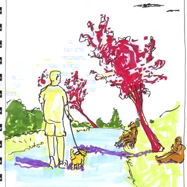 So, I've decided to post the sketches that I do when Al and I go to our neighborhood parks. That's what I really enjoy, sketching in the park with Al relaxing beside me.