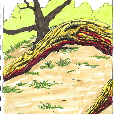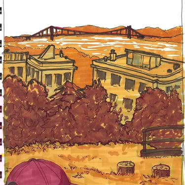 I occasionally bring a few markers with me and do some coloring at the park, but usually I do the coloring at home where I have all my markers and lots of colors to choose from. I take a few reference photos to remind me of shadows.